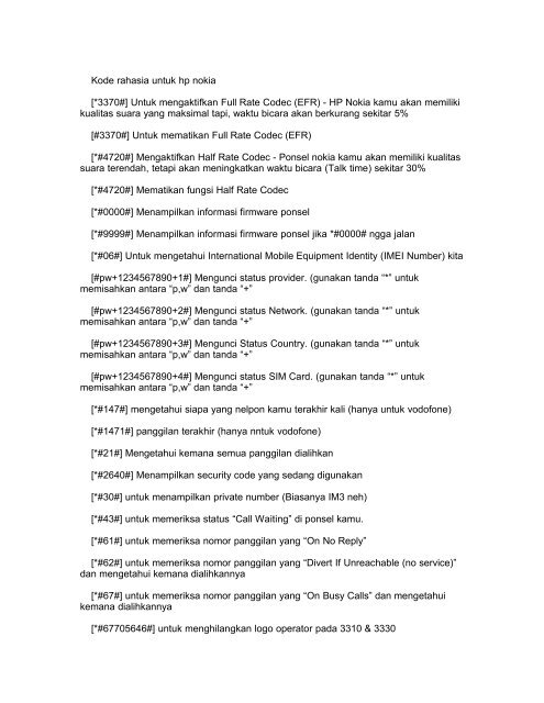 40 Lebih Daftar Kode Rahasia Nokia Terbaru Blog Iseng Kumpulan