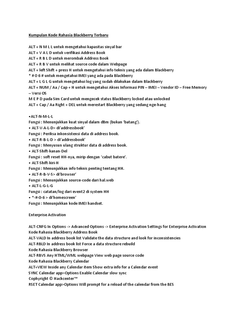 Beberapa diantaranya bahkan bisa jadai jalan keluar masalah yang sering ditemukan pada blackberry anda. Kode rahasia dibalik kecanggihan blackberry selamat malam para pembaca kampung rumasa weblogoh yah malam ini sedang berada di sebuah tempat yang memang memberikan ide pada saya untuk menulis sesuatu yang unik dan sangat menarik menurut saya. Semua bisa di coba untuk bb gemini bold storm onyx curve os6 os7dan semua type bb.