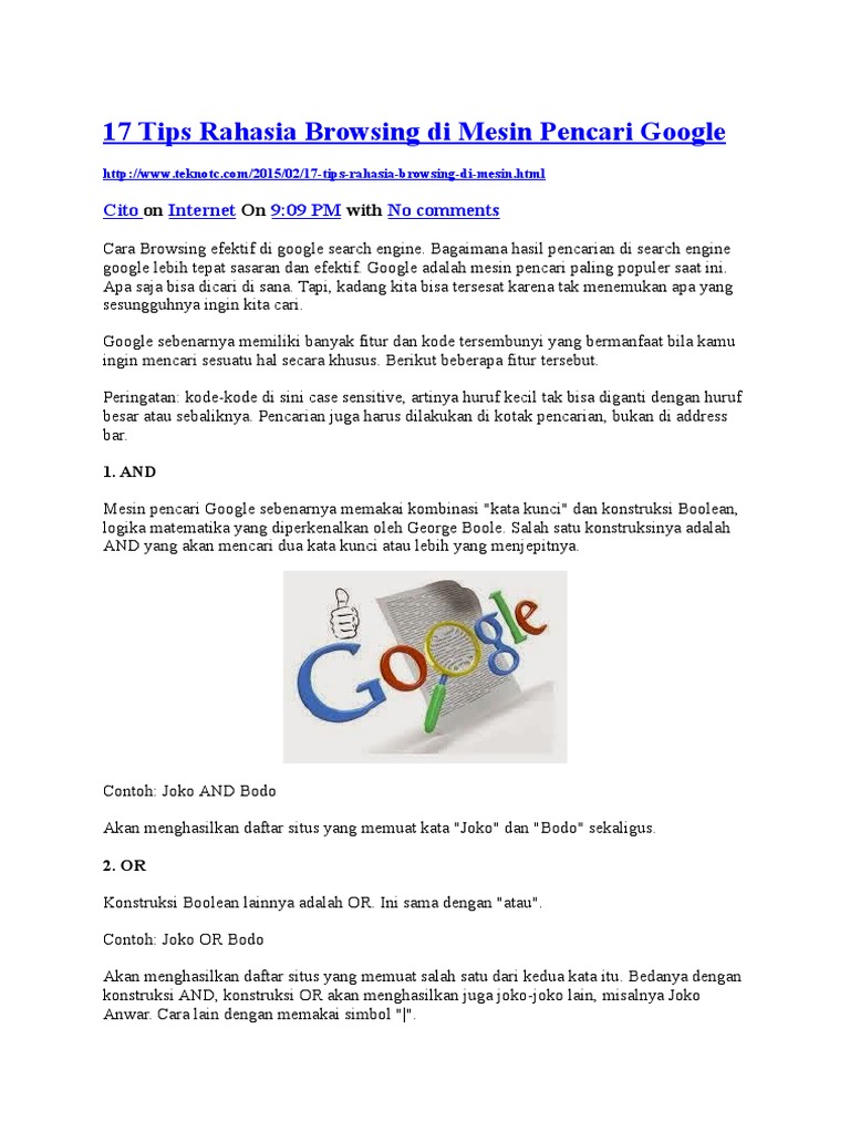 17 Tips Rahasia Browsing Di Mesin Pencari Google