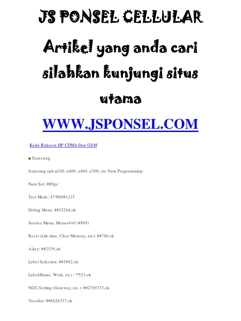 Kumpulan Kode Rahasia Hp Samsung Dan Lg Open Knowledge