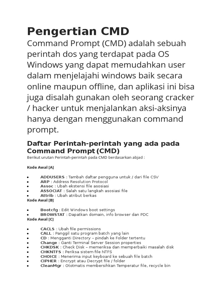 Dan kali ini saya akan kasih tau kode kode yang dapat kamu jalanin di cmd. Cmd sekedar tools aj krna banyak teknik hacking diketik pakai cmd peritahnya d. Command prompt adalah sebuah perintah dos yang terdapat pada os windows yang dapat memudahkan user dalam menjelajahi windows baik secara online maupun offline dan aplikasi ini bisa juga disalahgunakan oleh seorang cracker untuk menjalankan aksi aksinya hanya dengan menggunakan command prompt.