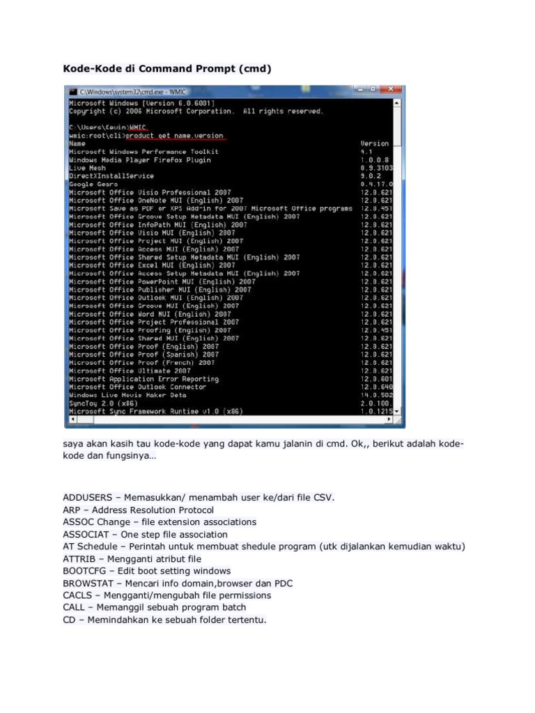 Ok berikut adalah kode kode dan fungsinya. Berikut ini kumpulan beberapa perintah di cmd beserta fungsi dan penggunannya. Nah apakah fungsi cmd sebenarnya bagi setiap pclaptop.