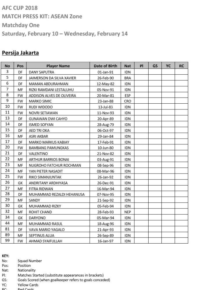 Daftar 26 Pemain Persija Jakarta Di Piala Afc 2019 Bolalob Com